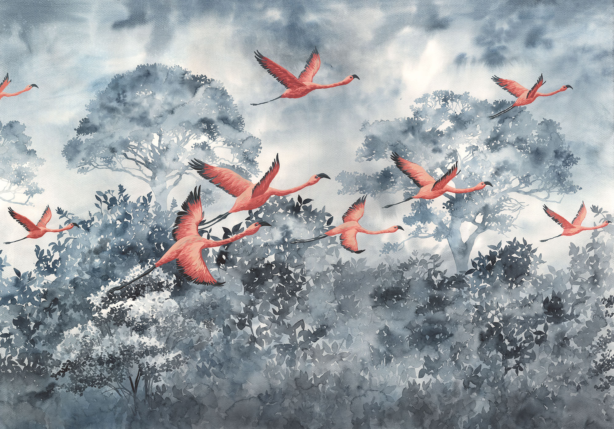 Ormanın arasında yer alan sürü halindeki flamingolar farkı bir tarz ortaya koymaktadır. Flamingoların gökyüzünde uçtuğu bu görsel, gri ve pembe tonların harika bir uyumu ile tasarlanmıştır.Duvar kağıdı, evinizin veya iş yerinizin duvarlarını harika bir doğal manzara ile süslemek için mükemmel bir seçenektir. Flamingoların kanat çırpışları, ormanın sessizliğinde yankılanırken, pembe tonların eşsiz uyumu göz alıcı bir manzara oluşturur.Ayrıca, doğal güzelliklerin ve vahşi yaşamın birleşimini yansıtan bu duvar kağıdı, evinizin veya iş yerinizin atmosferine huzur ve sakinlik katacaktır. Flamingo sürüsü ormanı, doğal bir güzellikle modern bir tasarımı harmanlayan muhteşem bir duvar kağıdıdır.